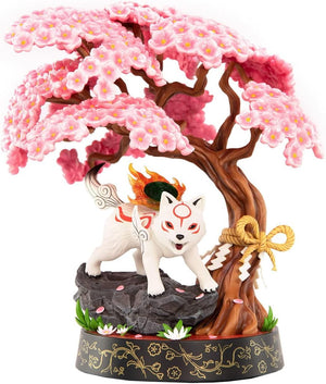 - The base is beautifully adorned with the Okami symbol and a sakura tree with traditional Japanese rope detail.