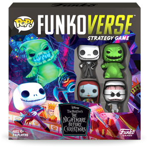 Funkoverse Strategy Game: Tim Burton's The Nightmare Before Christmas 4-Pack is a standalone game that includes the characters Jack Skellington, Sally, Oogie Boogie, and Dr. Finkelstein. This set may be combined with others, giving you the ability to assemble the team you want!