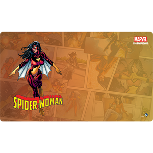 Take advantage of this new game mat, perfect for organizing your play space and protecting your cards. The Spider-Woman Game Mat for Marvel Champions: The Card Game offers a 24” x 12” play area with plenty of room for your identity, upgrades, assets, and deck, while drawing you into the unfolding campaign with art of Spider-Woman leaping into action.