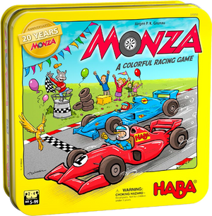In Monza, players need a fast car, a good strategy, and a bit of luck to win this racing game. The colored dice indicate the spaces on the track that you can to drive on, but which lane should you take and when should you start trying to passing the competition? The player who crosses the finish line first wins!