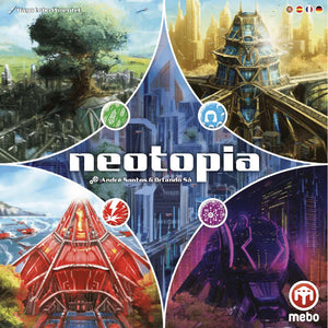 In Neotopia, a competitive fast paced tile placement pattern building game, you are part of a team of Visionaries who are building a futuristic pilot city focused on the fields of Energy, Technology, Community and Sustainable food.