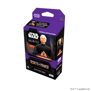 Enter a galaxy of endless possibilities in Star Wars™: Unlimited! In this fast-paced, easy-to-learn trading card game, you and your opponent face off in exciting head-to-head battles full of iconic Star Wars characters. Scheme in the shadows and plot your ultimate victory with Chancellor Palpatine in this Spotlight Deck! This box includes a Chancellor Palpatine leader card and a pre-built, ready-to-play 50-card deck that plays to his strengths. The deck features cards from multiple sets and includes full playsets of 4 Special-rarity cards, alongside damage counters, tokens, and a Secrets of Power booster pack to help you grow your collection!