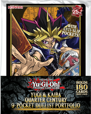Protect your collection in style with the all-new Yu-Gi-Oh! TRADING CARD GAME Yugi & Kaiba Quarter Century 9-Pocket Duelist Portfolio!